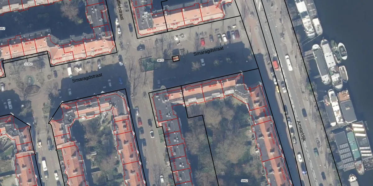 Smaragdstraat 90 is gelegen op kadastraal perceel ASD18V5462. Deze kadastrale aanduiding is uniek en wordt gebruikt door het Kadaster om eigendomsrechten en andere zakelijke rechten vast te leggen. Het perceel maakt onderdeel uit van de kadastrale gemeente Amsterdam.