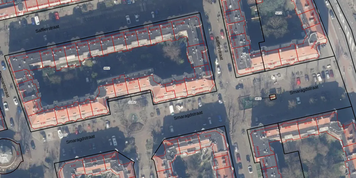 Smaragdstraat 93 is gelegen op kadastraal perceel ASD18V6852. Deze kadastrale aanduiding is uniek en wordt gebruikt door het Kadaster om eigendomsrechten en andere zakelijke rechten vast te leggen. Het perceel maakt onderdeel uit van de kadastrale gemeente Amsterdam.