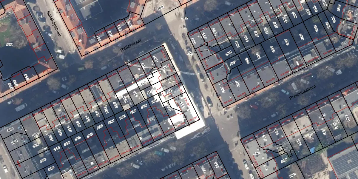 Het adres ligt op het perceel ASD19-W-2581, dat zich in de kadastrale gemeente Amsterdam bevindt. De gemiddelde perceelgrootte in Amsterdam is 1563,61 m². Dit perceel is kleiner: de perceeloppervlakte bedraagt 83 m². De grootste perceeloppervlakte in de kadastrale gemeente is 17,9 ha. De kleinste oppervlakte bedraagt 0 m². Op het perceel liggen in totaal 5 adressen. De laatste wijziging in het de Basisregistratie Kadaster (BRK) was op 01-11-2006.