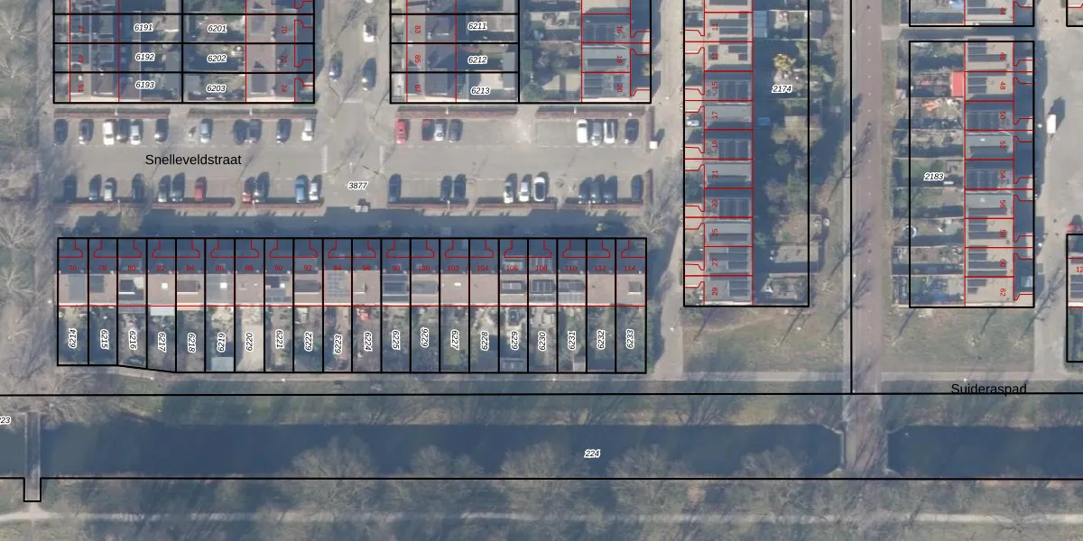 Snelleveldstraat 108 is gelegen op kadastraal perceel WPK02L6230. Deze kadastrale aanduiding is uniek en wordt gebruikt door het Kadaster om eigendomsrechten en andere zakelijke rechten vast te leggen. Het perceel maakt onderdeel uit van de kadastrale gemeente Weesperkarspel.