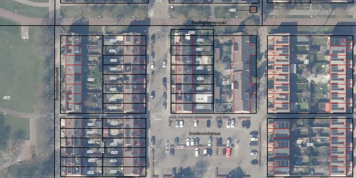 Snelleveldstraat 29 is gelegen op kadastraal perceel WPK02L5133. Deze kadastrale aanduiding is uniek en wordt gebruikt door het Kadaster om eigendomsrechten en andere zakelijke rechten vast te leggen. Het perceel maakt onderdeel uit van de kadastrale gemeente Weesperkarspel.