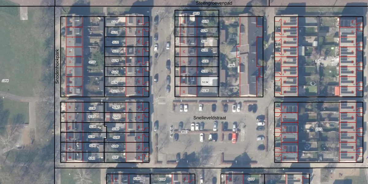 Het perceel waarop Snelleveldstraat 33 staat heeft een oppervlakte van 134 m². Dit is een middelgroot perceel. De perceeloppervlakte wordt geregistreerd door het Kadaster. Gedetailleerde informatie over de maten van dit perceel kunt u vinden in het rapport Kadastrale kaart met maatvoering van Snelleveldstraat 33.