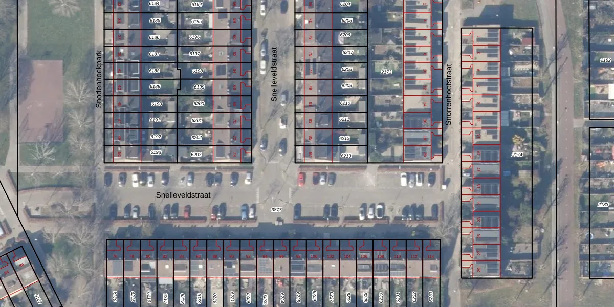 Snelleveldstraat 87 is gelegen op kadastraal perceel WPK02L6213. Deze kadastrale aanduiding is uniek en wordt gebruikt door het Kadaster om eigendomsrechten en andere zakelijke rechten vast te leggen. Het perceel maakt onderdeel uit van de kadastrale gemeente Weesperkarspel.