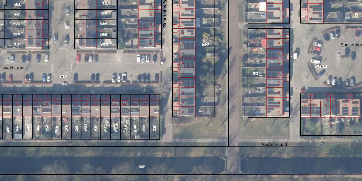 Het perceel waarop Snorrenhoefstraat 25 staat heeft een oppervlakte van 1875 m². Dit is een zeer groot perceel. De perceeloppervlakte wordt geregistreerd door het Kadaster. Gedetailleerde informatie over de maten van dit perceel kunt u vinden in het rapport Kadastrale kaart met maatvoering van Snorrenhoefstraat 25.