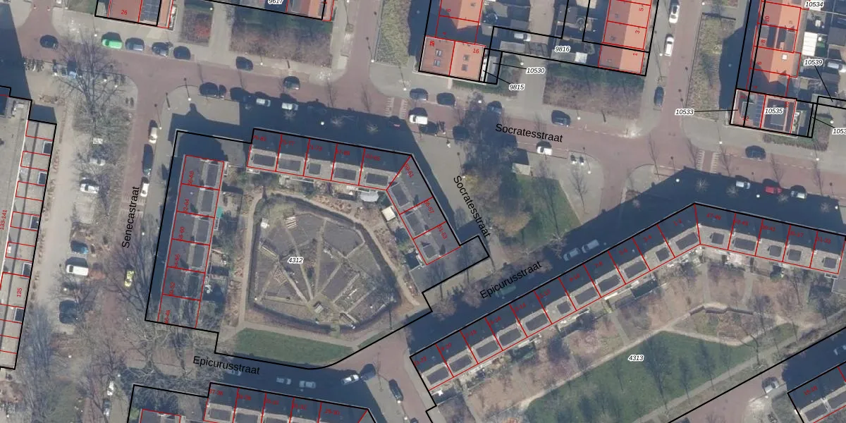 Het perceel waarop Socratesstraat 57 staat heeft een oppervlakte van 3203 m². Dit is een zeer groot perceel. De perceeloppervlakte wordt geregistreerd door het Kadaster. Gedetailleerde informatie over de maten van dit perceel kunt u vinden in het rapport Kadastrale kaart met maatvoering van Socratesstraat 57.