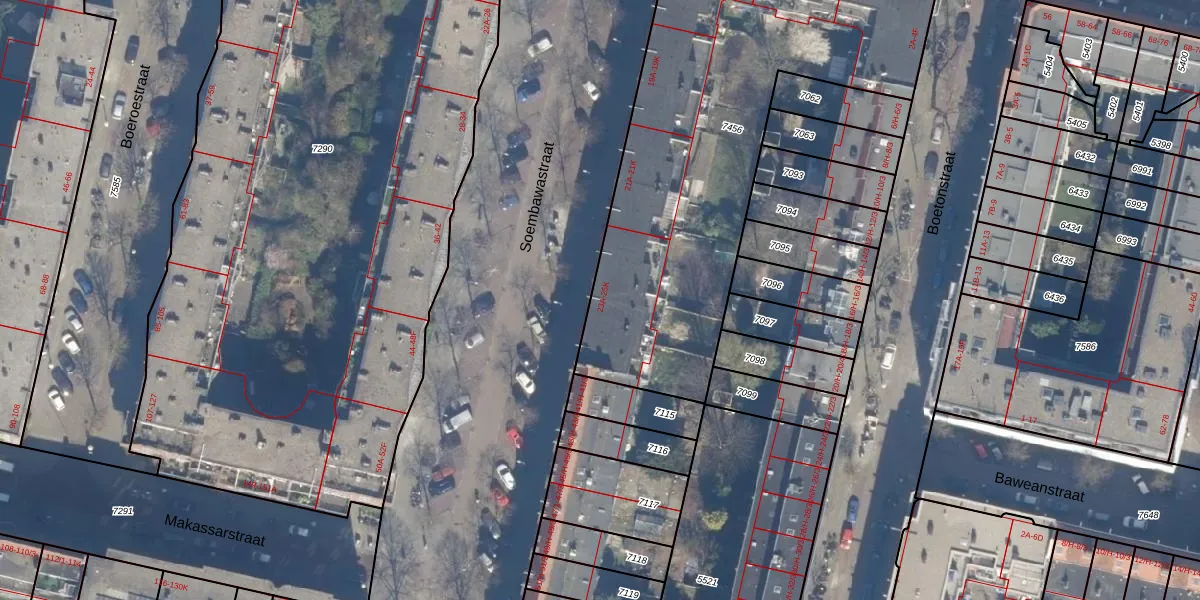 Het perceel waarop Soembawastraat 25-A staat heeft een oppervlakte van 2212 m². Dit is een zeer groot perceel. De perceeloppervlakte wordt geregistreerd door het Kadaster. Gedetailleerde informatie over de maten van dit perceel kunt u vinden in het rapport Kadastrale kaart met maatvoering van Soembawastraat 25-A.