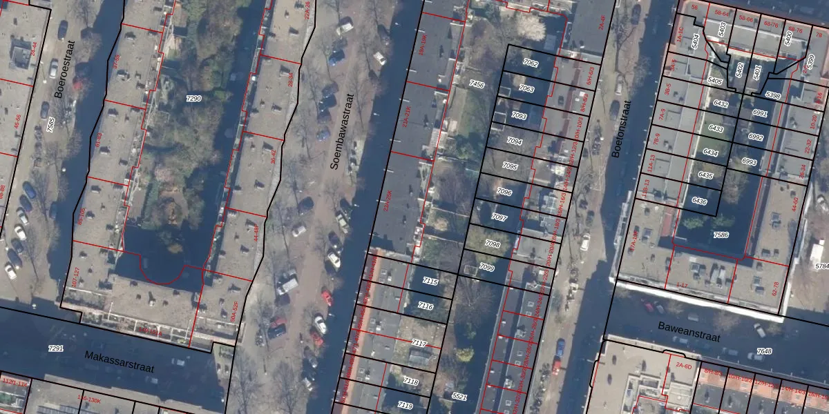 Het perceel waarop Soembawastraat 25-H staat heeft een oppervlakte van 2212 m². Dit is een zeer groot perceel. De perceeloppervlakte wordt geregistreerd door het Kadaster. Gedetailleerde informatie over de maten van dit perceel kunt u vinden in het rapport Kadastrale kaart met maatvoering van Soembawastraat 25-H.