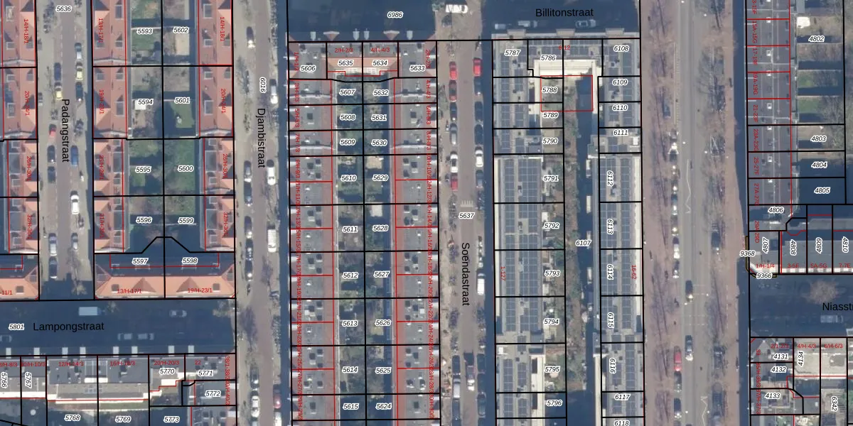 Soendastraat 14-3 is gelegen op kadastraal perceel ASD15S5628. Deze kadastrale aanduiding is uniek en wordt gebruikt door het Kadaster om eigendomsrechten en andere zakelijke rechten vast te leggen. Het perceel maakt onderdeel uit van de kadastrale gemeente Amsterdam.