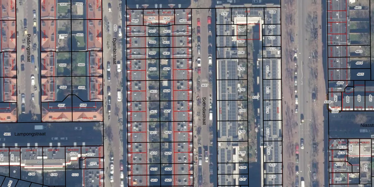 Het perceel waarop Soendastraat 16-H staat heeft een oppervlakte van 193 m². Dit is een middelgroot perceel. De perceeloppervlakte wordt geregistreerd door het Kadaster. Gedetailleerde informatie over de maten van dit perceel kunt u vinden in het rapport Kadastrale kaart met maatvoering van Soendastraat 16-H.