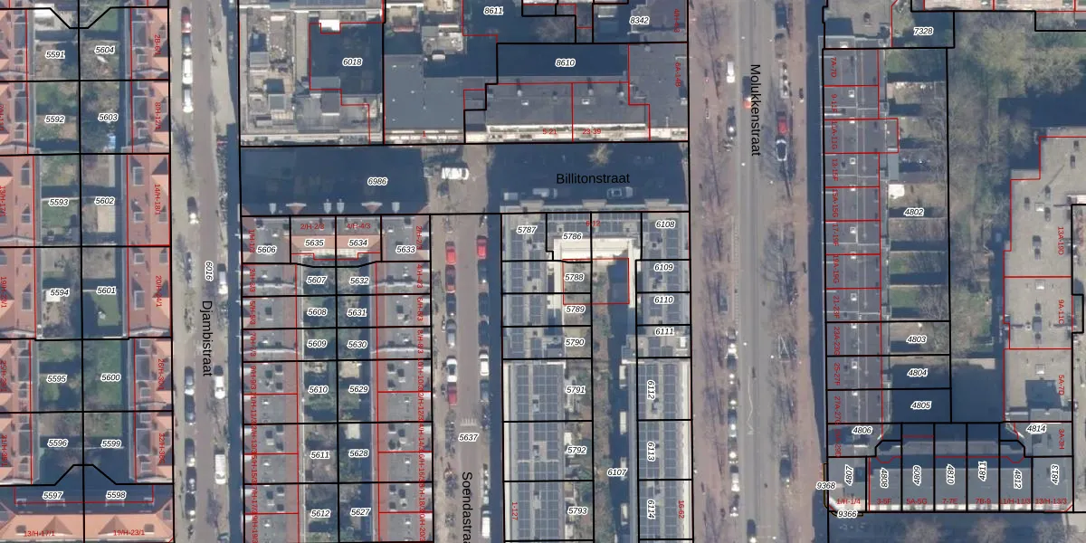 Het perceel waarop Soendastraat 27 staat heeft een oppervlakte van 98 m². Dit is een klein perceel. De perceeloppervlakte wordt geregistreerd door het Kadaster. Gedetailleerde informatie over de maten van dit perceel kunt u vinden in het rapport Kadastrale kaart met maatvoering van Soendastraat 27.