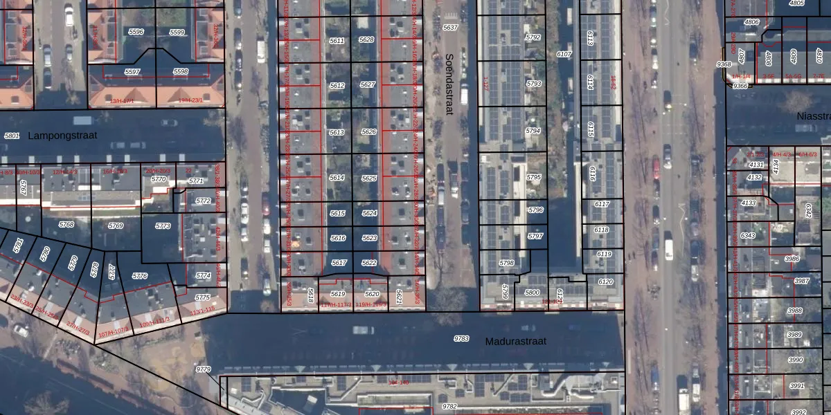Het perceel waarop Soendastraat 30-3 staat heeft een oppervlakte van 104 m². Dit is een middelgroot perceel. De perceeloppervlakte wordt geregistreerd door het Kadaster. Gedetailleerde informatie over de maten van dit perceel kunt u vinden in het rapport Kadastrale kaart met maatvoering van Soendastraat 30-3.