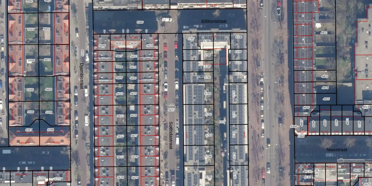 Het perceel waarop Soendastraat 53 staat heeft een oppervlakte van 184 m². Dit is een middelgroot perceel. De perceeloppervlakte wordt geregistreerd door het Kadaster. Gedetailleerde informatie over de maten van dit perceel kunt u vinden in het rapport Kadastrale kaart met maatvoering van Soendastraat 53.