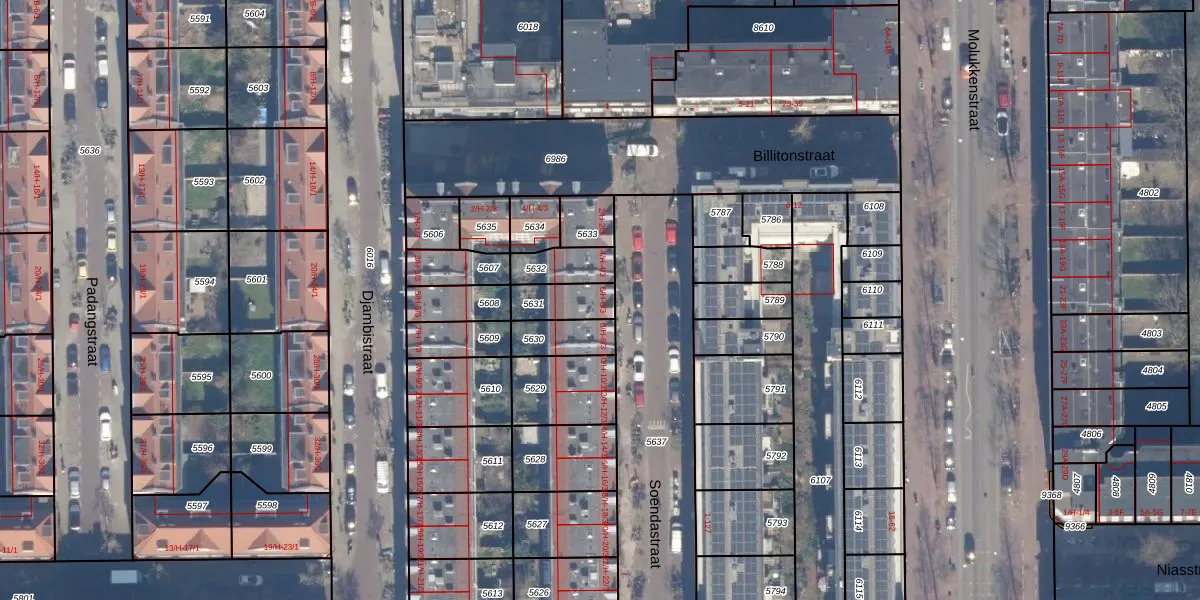 Het perceel waarop Soendastraat 6-1 staat heeft een oppervlakte van 104 m². Dit is een middelgroot perceel. De perceeloppervlakte wordt geregistreerd door het Kadaster. Gedetailleerde informatie over de maten van dit perceel kunt u vinden in het rapport Kadastrale kaart met maatvoering van Soendastraat 6-1.