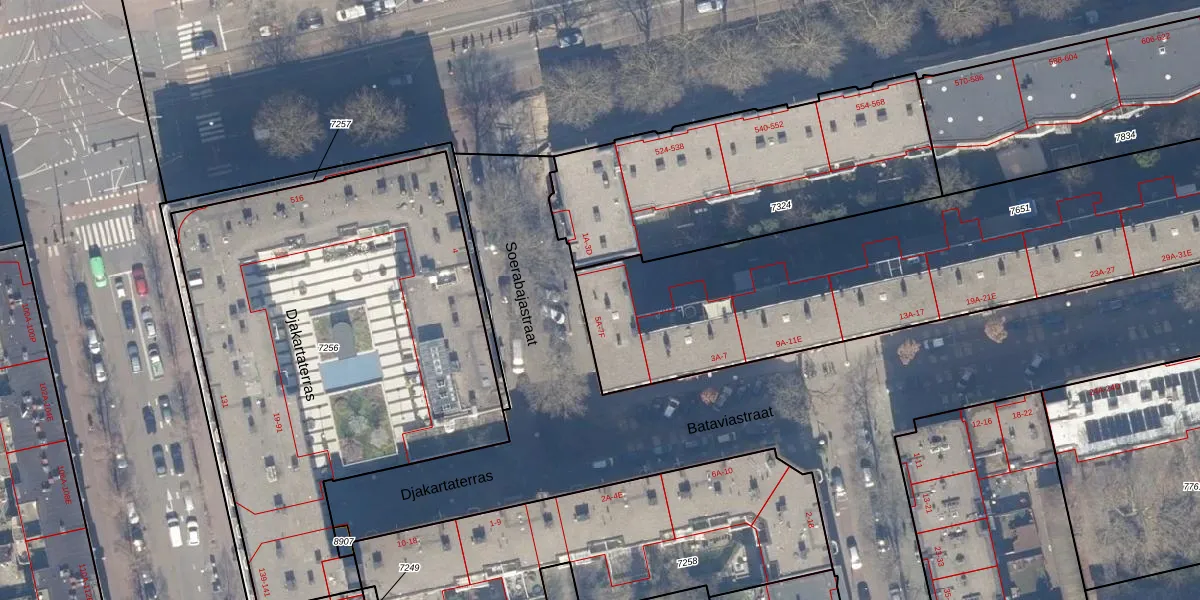 Het perceel waarop Soerabajastraat 5-C staat heeft een oppervlakte van 2168 m². Dit is een zeer groot perceel. De perceeloppervlakte wordt geregistreerd door het Kadaster. Gedetailleerde informatie over de maten van dit perceel kunt u vinden in het rapport Kadastrale kaart met maatvoering van Soerabajastraat 5-C.