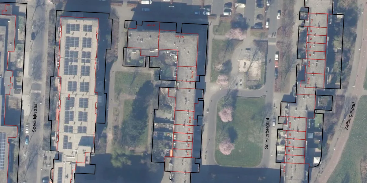 Soesterberghof 100 is gelegen op kadastraal perceel WPK02L2337. Deze kadastrale aanduiding is uniek en wordt gebruikt door het Kadaster om eigendomsrechten en andere zakelijke rechten vast te leggen. Het perceel maakt onderdeel uit van de kadastrale gemeente Weesperkarspel.