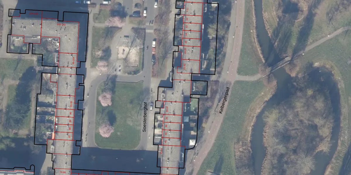 Het perceel waarop Soesterberghof 32 staat heeft een oppervlakte van 6244 m². Dit is een zeer groot perceel. De perceeloppervlakte wordt geregistreerd door het Kadaster. Gedetailleerde informatie over de maten van dit perceel kunt u vinden in het rapport Kadastrale kaart met maatvoering van Soesterberghof 32.