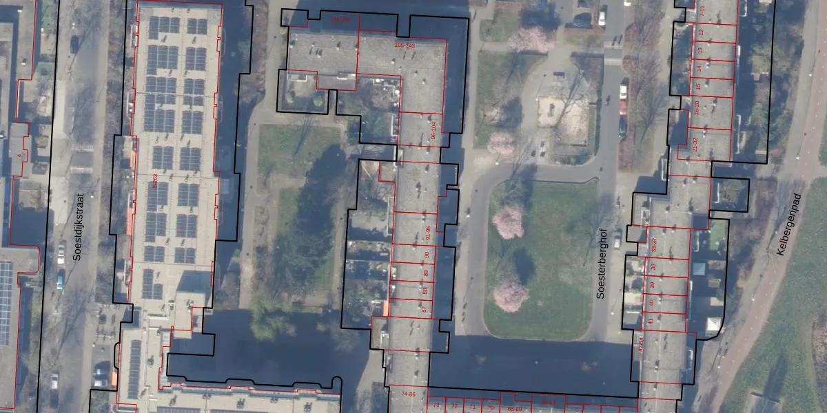 Het perceel waarop Soesterberghof 97 staat heeft een oppervlakte van 6244 m². Dit is een zeer groot perceel. De perceeloppervlakte wordt geregistreerd door het Kadaster. Gedetailleerde informatie over de maten van dit perceel kunt u vinden in het rapport Kadastrale kaart met maatvoering van Soesterberghof 97.