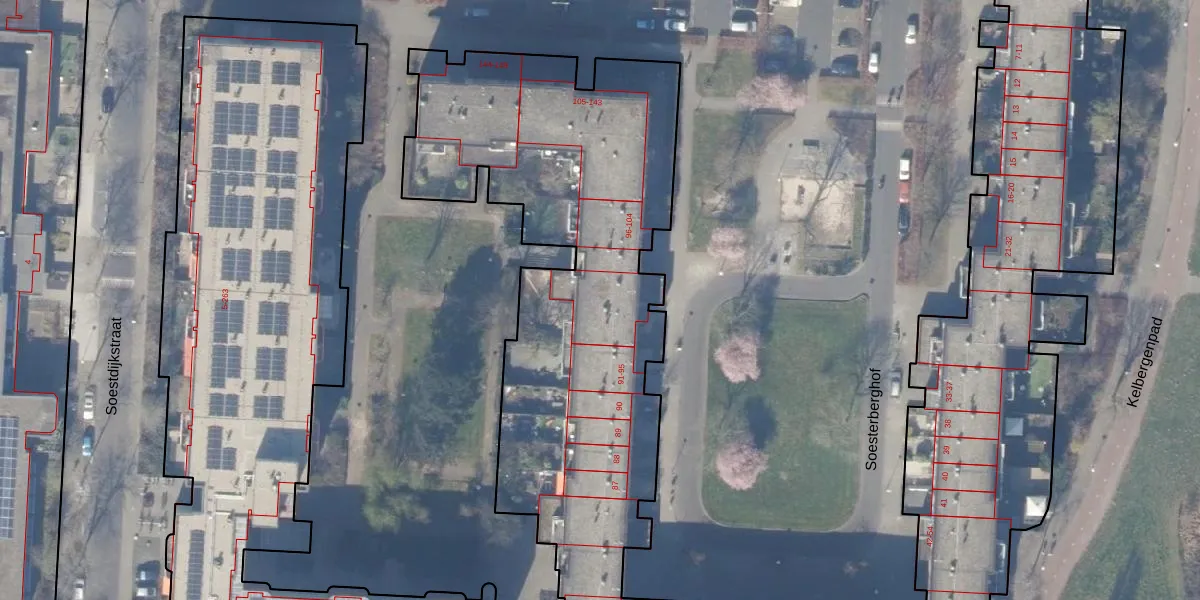Het perceel waarop Soesterberghof 99 staat heeft een oppervlakte van 6244 m². Dit is een zeer groot perceel. De perceeloppervlakte wordt geregistreerd door het Kadaster. Gedetailleerde informatie over de maten van dit perceel kunt u vinden in het rapport Kadastrale kaart met maatvoering van Soesterberghof 99.