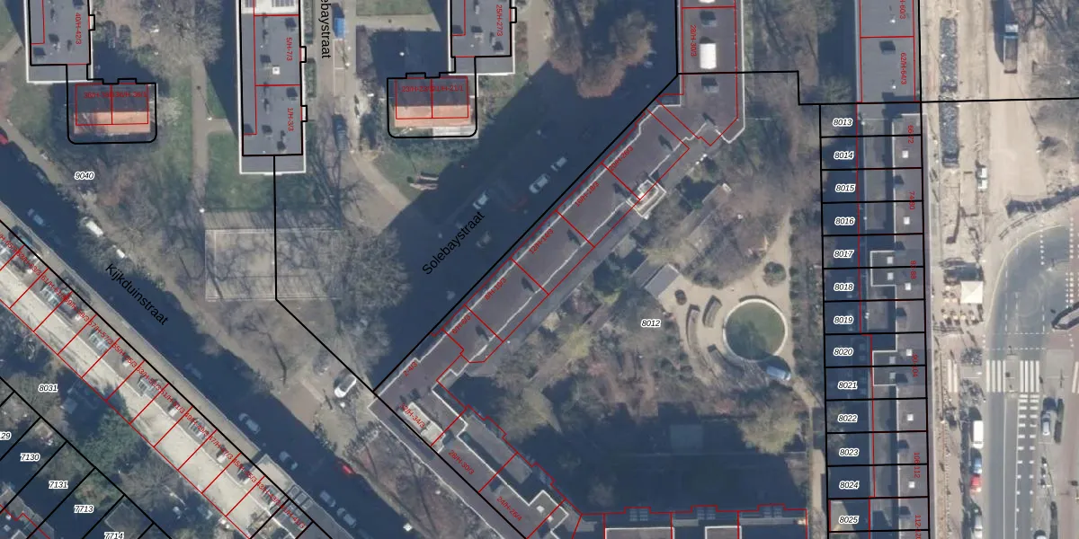Solebaystraat 12-2 is gelegen op kadastraal perceel STN02C8012. Deze kadastrale aanduiding is uniek en wordt gebruikt door het Kadaster om eigendomsrechten en andere zakelijke rechten vast te leggen. Het perceel maakt onderdeel uit van de kadastrale gemeente Sloten Noord-Holland.