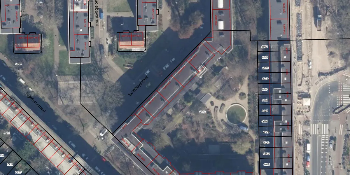 Solebaystraat 14-2 is gelegen op kadastraal perceel STN02C8012. Deze kadastrale aanduiding is uniek en wordt gebruikt door het Kadaster om eigendomsrechten en andere zakelijke rechten vast te leggen. Het perceel maakt onderdeel uit van de kadastrale gemeente Sloten Noord-Holland.