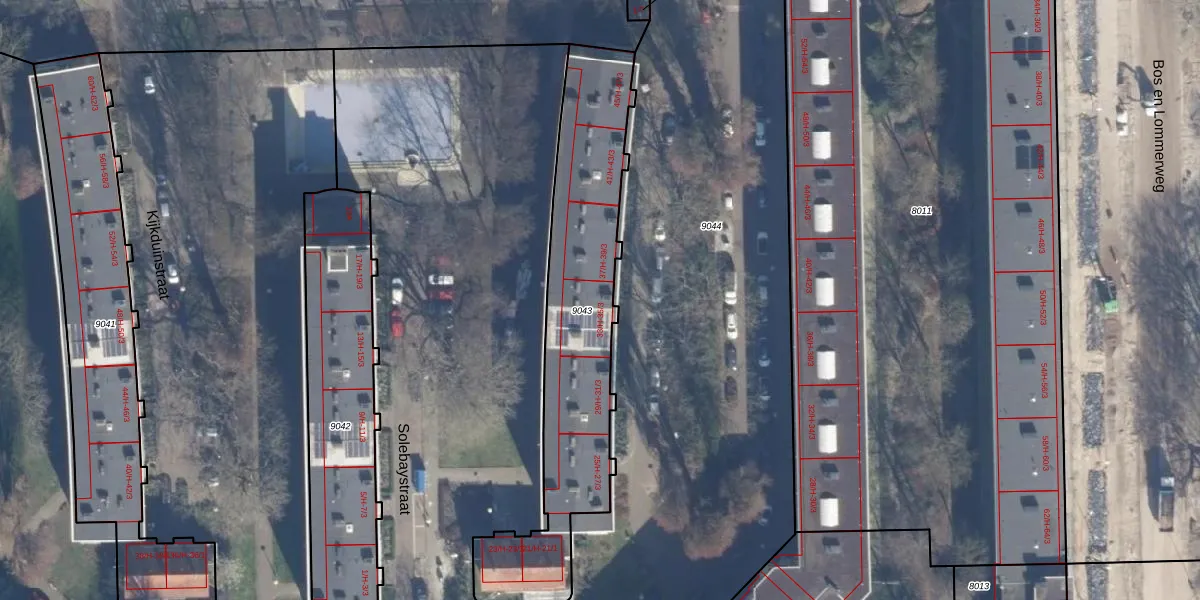 Solebaystraat 35-H is gelegen op kadastraal perceel STN02C9043. Deze kadastrale aanduiding is uniek en wordt gebruikt door het Kadaster om eigendomsrechten en andere zakelijke rechten vast te leggen. Het perceel maakt onderdeel uit van de kadastrale gemeente Sloten Noord-Holland.