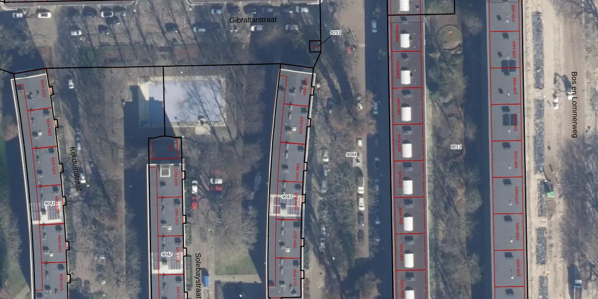 Solebaystraat 39-H is gelegen op kadastraal perceel STN02C9043. Deze kadastrale aanduiding is uniek en wordt gebruikt door het Kadaster om eigendomsrechten en andere zakelijke rechten vast te leggen. Het perceel maakt onderdeel uit van de kadastrale gemeente Sloten Noord-Holland.