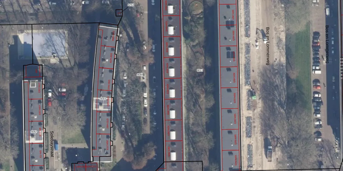 Het perceel waarop Solebaystraat 42-3 staat heeft een oppervlakte van 4673 m². Dit is een zeer groot perceel. De perceeloppervlakte wordt geregistreerd door het Kadaster. Gedetailleerde informatie over de maten van dit perceel kunt u vinden in het rapport Kadastrale kaart met maatvoering van Solebaystraat 42-3.