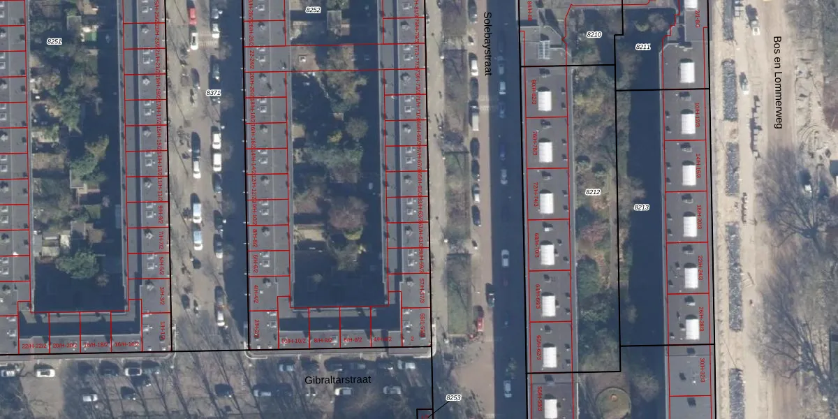 Solebaystraat 63-H is gelegen op kadastraal perceel STN02C8252. Deze kadastrale aanduiding is uniek en wordt gebruikt door het Kadaster om eigendomsrechten en andere zakelijke rechten vast te leggen. Het perceel maakt onderdeel uit van de kadastrale gemeente Sloten Noord-Holland.