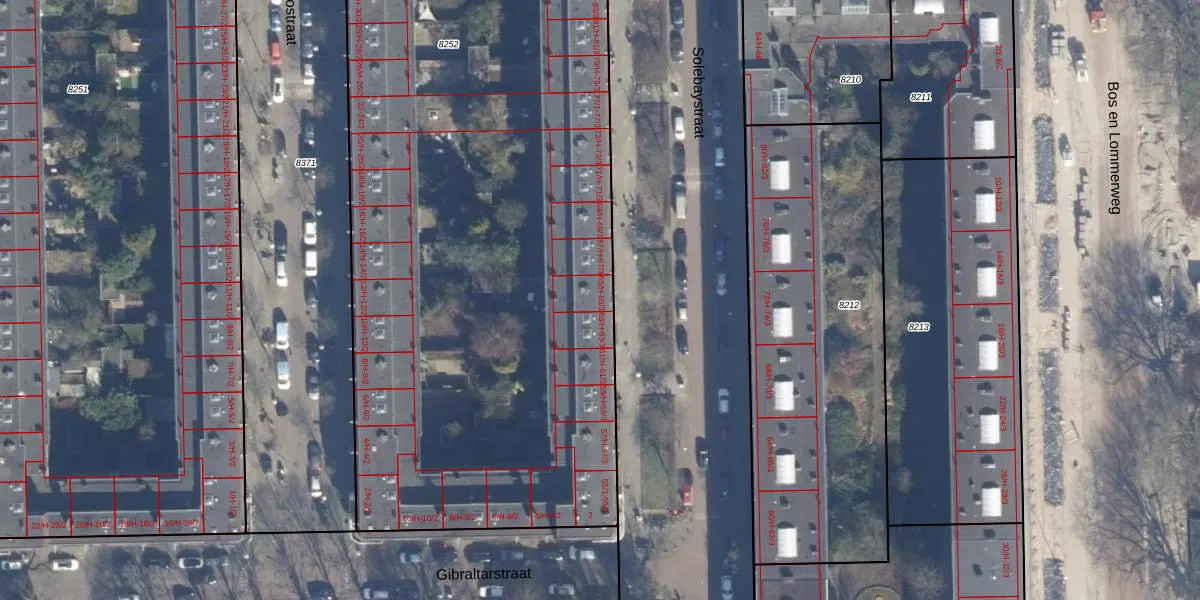 Solebaystraat 65-H is gelegen op kadastraal perceel STN02C8252. Deze kadastrale aanduiding is uniek en wordt gebruikt door het Kadaster om eigendomsrechten en andere zakelijke rechten vast te leggen. Het perceel maakt onderdeel uit van de kadastrale gemeente Sloten Noord-Holland.