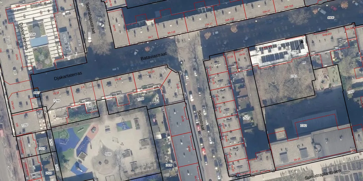 Solostraat 14 is gelegen op kadastraal perceel ASD19W7258. Deze kadastrale aanduiding is uniek en wordt gebruikt door het Kadaster om eigendomsrechten en andere zakelijke rechten vast te leggen. Het perceel maakt onderdeel uit van de kadastrale gemeente Amsterdam.