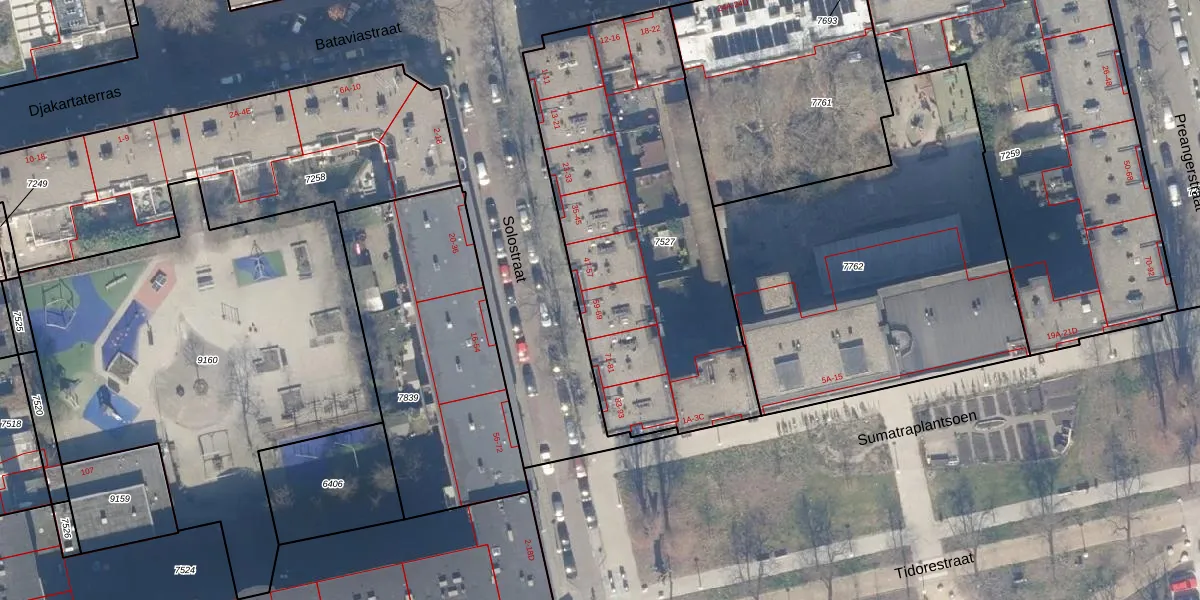 Het perceel waarop Solostraat 67 staat heeft een oppervlakte van 1757 m². Dit is een zeer groot perceel. De perceeloppervlakte wordt geregistreerd door het Kadaster. Gedetailleerde informatie over de maten van dit perceel kunt u vinden in het rapport Kadastrale kaart met maatvoering van Solostraat 67.