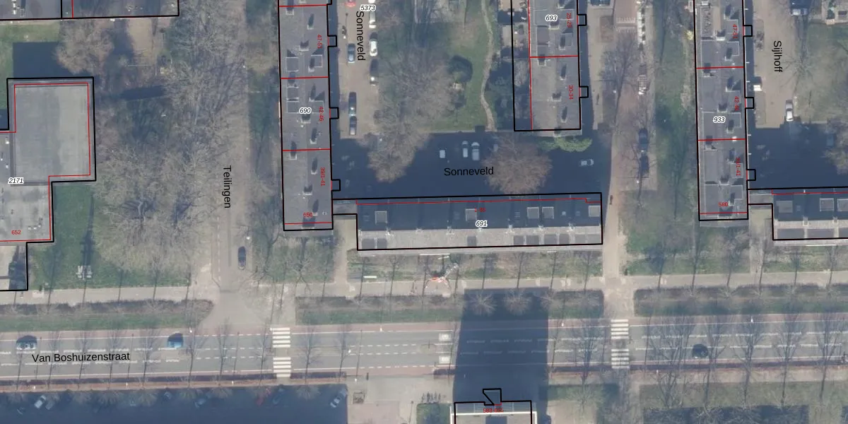 Het perceel waarop Sonneveld 11 staat heeft een oppervlakte van 719 m². Dit is een groot perceel. De perceeloppervlakte wordt geregistreerd door het Kadaster. Gedetailleerde informatie over de maten van dit perceel kunt u vinden in het rapport Kadastrale kaart met maatvoering van Sonneveld 11.