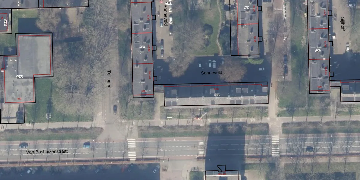 Het perceel waarop Sonneveld 13 staat heeft een oppervlakte van 719 m². Dit is een groot perceel. De perceeloppervlakte wordt geregistreerd door het Kadaster. Gedetailleerde informatie over de maten van dit perceel kunt u vinden in het rapport Kadastrale kaart met maatvoering van Sonneveld 13.