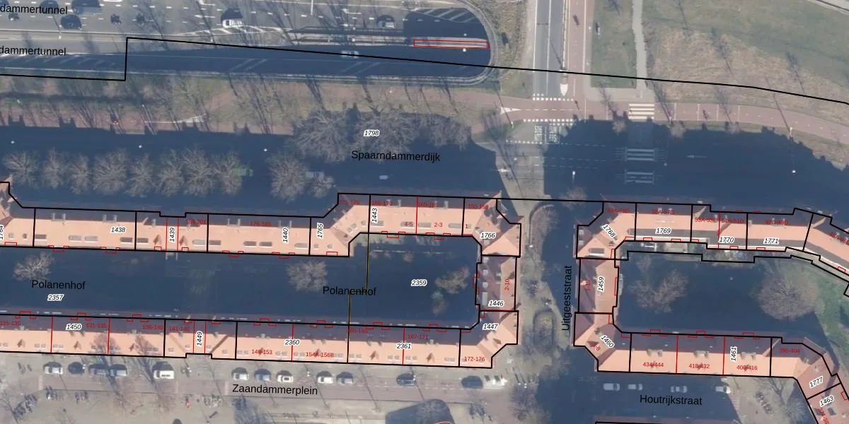 Spaarndammerdijk 165 is gelegen op kadastraal perceel ASD20X1443. Deze kadastrale aanduiding is uniek en wordt gebruikt door het Kadaster om eigendomsrechten en andere zakelijke rechten vast te leggen. Het perceel maakt onderdeel uit van de kadastrale gemeente Amsterdam.