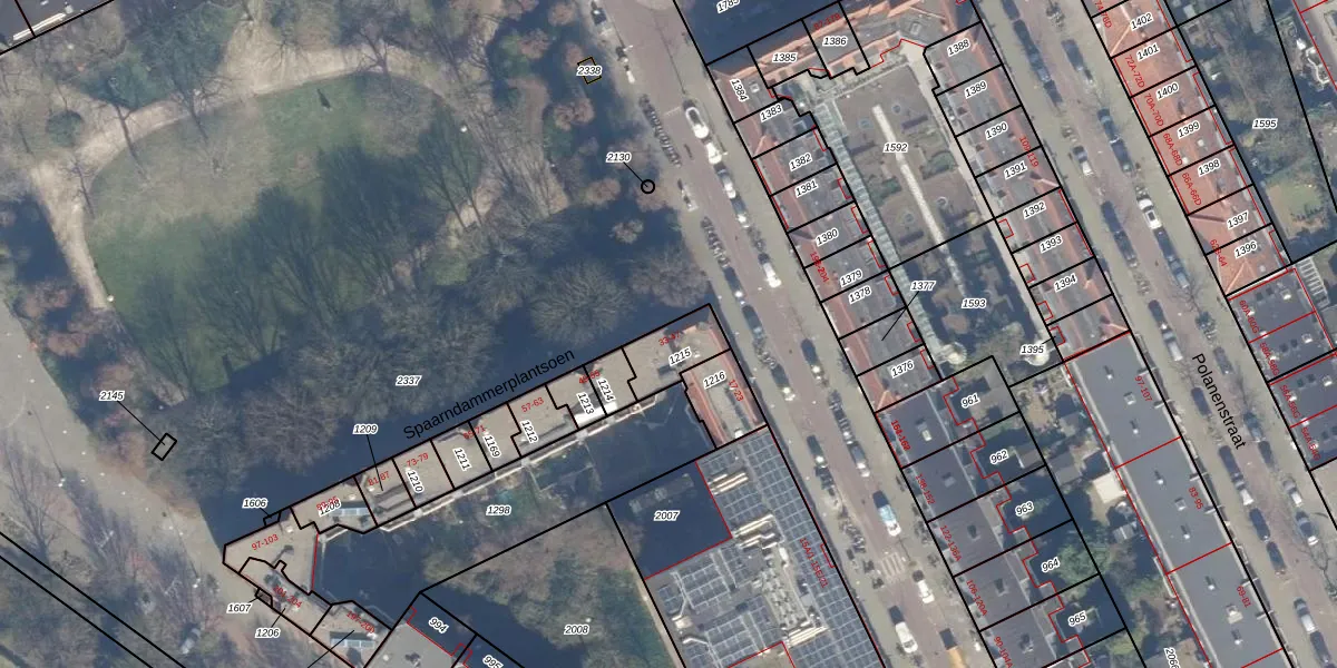 Spaarndammerplantsoen 39 is gelegen op kadastraal perceel ASD20X1215. Deze kadastrale aanduiding is uniek en wordt gebruikt door het Kadaster om eigendomsrechten en andere zakelijke rechten vast te leggen. Het perceel maakt onderdeel uit van de kadastrale gemeente Amsterdam.