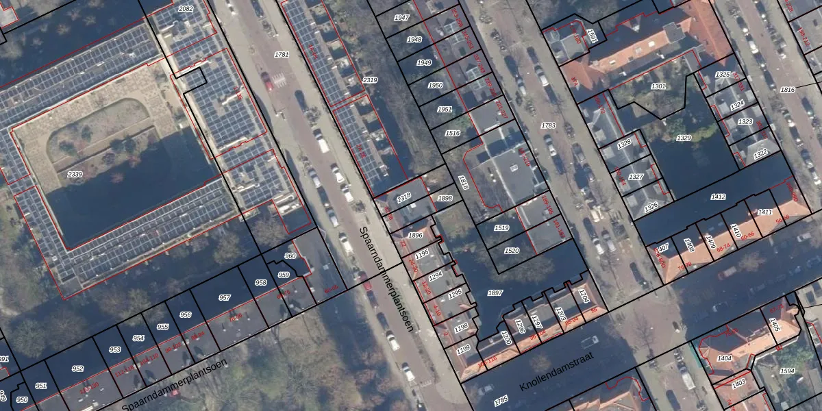 Het perceel waarop Spaarndammerplantsoen 48 staat heeft een oppervlakte van 93 m². Dit is een klein perceel. De perceeloppervlakte wordt geregistreerd door het Kadaster. Gedetailleerde informatie over de maten van dit perceel kunt u vinden in het rapport Kadastrale kaart met maatvoering van Spaarndammerplantsoen 48.