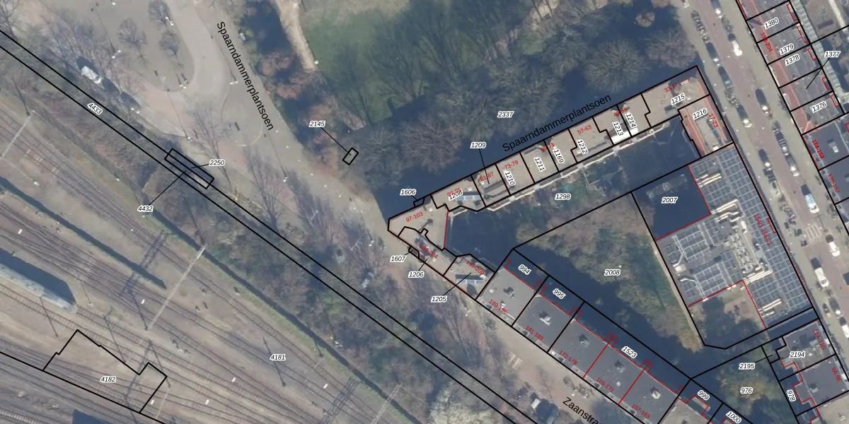 Spaarndammerplantsoen 97 is gelegen op kadastraal perceel ASD20X1298. Deze kadastrale aanduiding is uniek en wordt gebruikt door het Kadaster om eigendomsrechten en andere zakelijke rechten vast te leggen. Het perceel maakt onderdeel uit van de kadastrale gemeente Amsterdam.