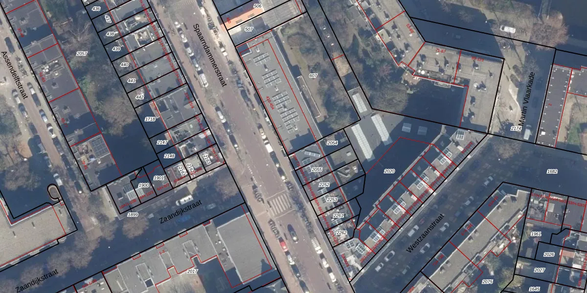 Spaarndammerstraat 410 is gelegen op kadastraal perceel ASD20X607. Deze kadastrale aanduiding is uniek en wordt gebruikt door het Kadaster om eigendomsrechten en andere zakelijke rechten vast te leggen. Het perceel maakt onderdeel uit van de kadastrale gemeente Amsterdam.