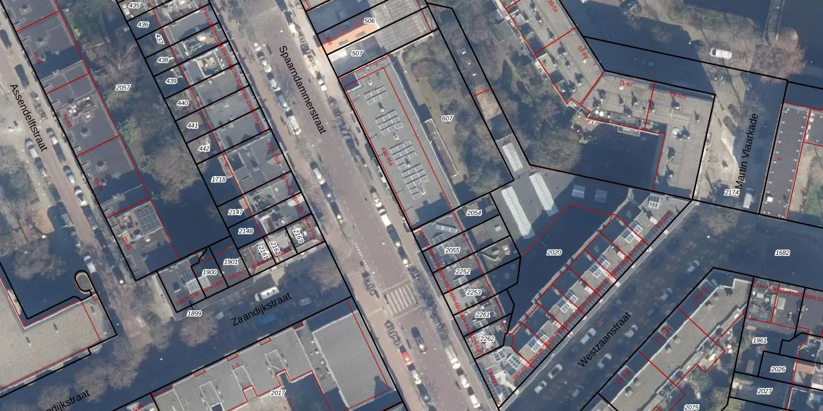 Spaarndammerstraat 414 is gelegen op kadastraal perceel ASD20X607. Deze kadastrale aanduiding is uniek en wordt gebruikt door het Kadaster om eigendomsrechten en andere zakelijke rechten vast te leggen. Het perceel maakt onderdeel uit van de kadastrale gemeente Amsterdam.