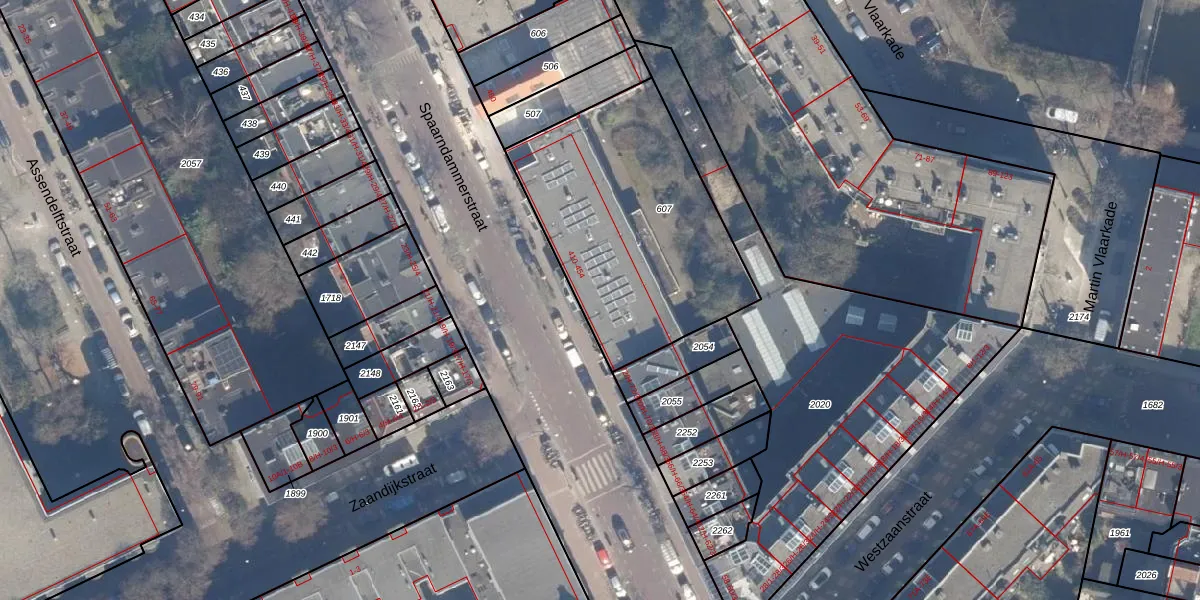 Spaarndammerstraat 422 is gelegen op kadastraal perceel ASD20X607. Deze kadastrale aanduiding is uniek en wordt gebruikt door het Kadaster om eigendomsrechten en andere zakelijke rechten vast te leggen. Het perceel maakt onderdeel uit van de kadastrale gemeente Amsterdam.