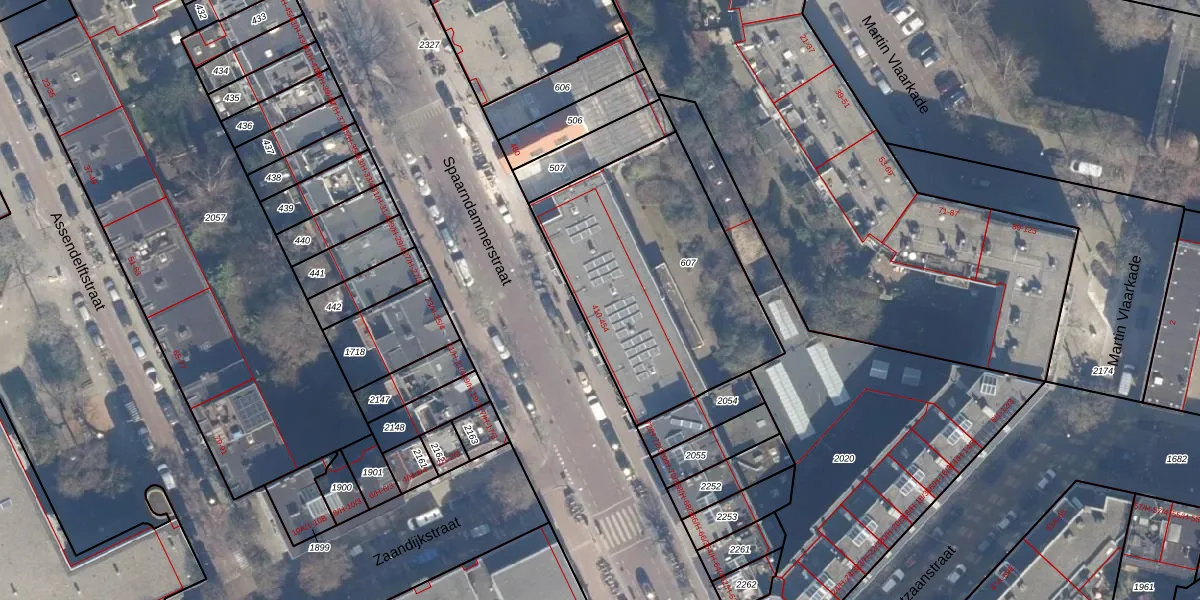 Spaarndammerstraat 430 is gelegen op kadastraal perceel ASD20X607. Deze kadastrale aanduiding is uniek en wordt gebruikt door het Kadaster om eigendomsrechten en andere zakelijke rechten vast te leggen. Het perceel maakt onderdeel uit van de kadastrale gemeente Amsterdam.
