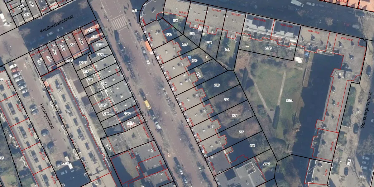 Het adres ligt op het perceel ASD20-X-732, dat zich in de kadastrale gemeente Amsterdam bevindt. Het perceel is kleiner dan gemiddeld in Amsterdam. Het perceel is 317 m² groot, terwijl het gemiddelde ligt op 466,51 m². De grootste perceeloppervlakte in de kadastrale gemeente is 3,6 ha. De kleinste oppervlakte bedraagt 0 m². Op het perceel zijn 8 adressen aanwezig. De huidige grenzen van het perceel zijn digitaal in de Basisregistratie Kadaster (BRK) geregistreerd op 26-01-2007.