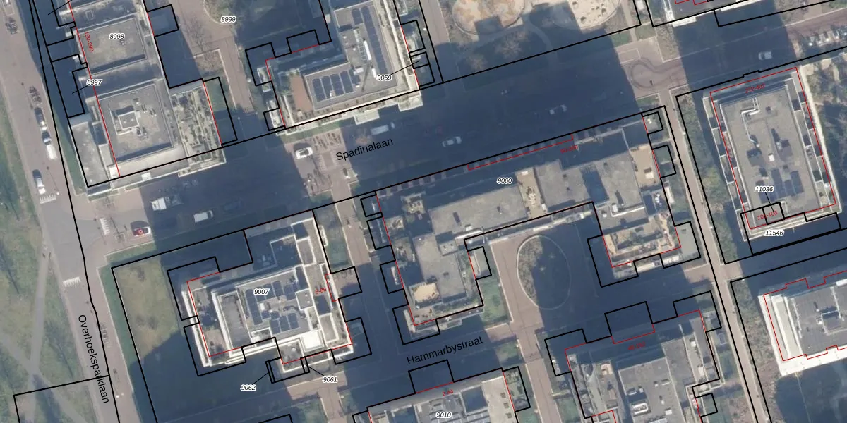 Spadinalaan 154 is gelegen op kadastraal perceel ASD07K9060. Deze kadastrale aanduiding is uniek en wordt gebruikt door het Kadaster om eigendomsrechten en andere zakelijke rechten vast te leggen. Het perceel maakt onderdeel uit van de kadastrale gemeente Amsterdam.