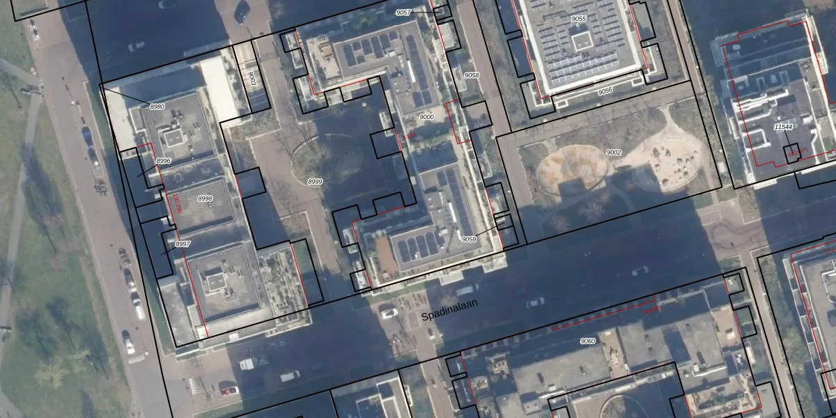 Spadinalaan 19 is gelegen op kadastraal perceel ASD07K9000. Deze kadastrale aanduiding is uniek en wordt gebruikt door het Kadaster om eigendomsrechten en andere zakelijke rechten vast te leggen. Het perceel maakt onderdeel uit van de kadastrale gemeente Amsterdam.