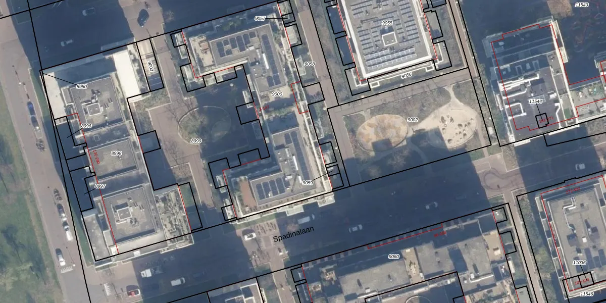 Het perceel waarop Spadinalaan 31 staat heeft een oppervlakte van 1978 m². Dit is een zeer groot perceel. De perceeloppervlakte wordt geregistreerd door het Kadaster. Gedetailleerde informatie over de maten van dit perceel kunt u vinden in het rapport Kadastrale kaart met maatvoering van Spadinalaan 31.