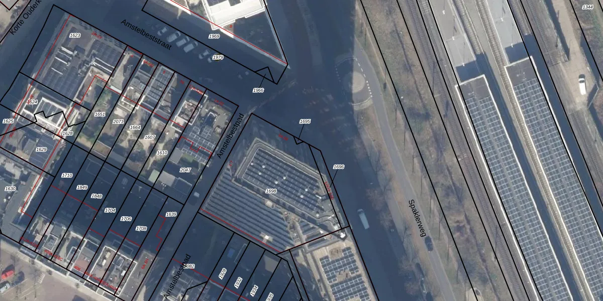 Het perceel waarop het adres ligt is ASD27-AG-1698. De afkorting 'ASD27' staat voor kadastrale gemeente Amsterdam. Het perceel is kleiner dan gemiddeld in Amsterdam. Het perceel is 1310 m² groot, terwijl het gemiddelde ligt op 3544,61 m². Het kleinste perceel in de kadastrale gemeente is 1 m² groot. De grootste perceeloppervlakte is 18,4 ha. Er zijn 154 adressen aanwezig op het perceel. De laatste wijziging in het de Basisregistratie Kadaster (BRK) was op 14-05-2020.