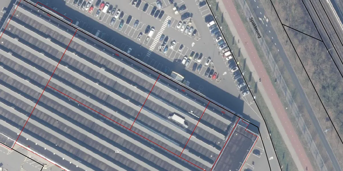 Het perceel waarop Spaklerweg 44-C staat heeft een oppervlakte van 2,1 ha. Dit is een zeer groot perceel. De perceeloppervlakte wordt geregistreerd door het Kadaster. Gedetailleerde informatie over de maten van dit perceel kunt u vinden in het rapport Kadastrale kaart met maatvoering van Spaklerweg 44-C.