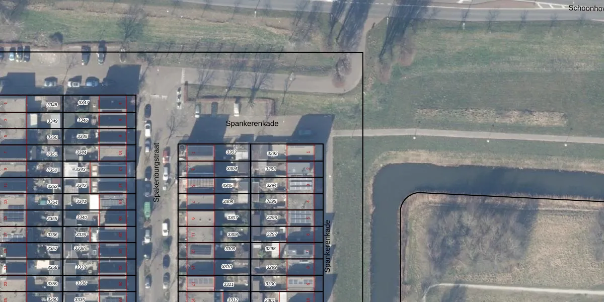 Spankerenkade 1 is gelegen op kadastraal perceel WPK02L3292. Deze kadastrale aanduiding is uniek en wordt gebruikt door het Kadaster om eigendomsrechten en andere zakelijke rechten vast te leggen. Het perceel maakt onderdeel uit van de kadastrale gemeente Weesperkarspel.