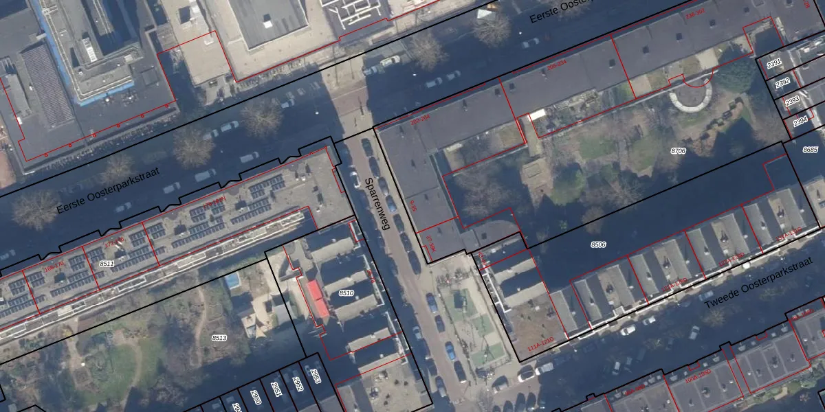 Sparrenweg 23 is gelegen op kadastraal perceel ASD15S8706. Deze kadastrale aanduiding is uniek en wordt gebruikt door het Kadaster om eigendomsrechten en andere zakelijke rechten vast te leggen. Het perceel maakt onderdeel uit van de kadastrale gemeente Amsterdam.