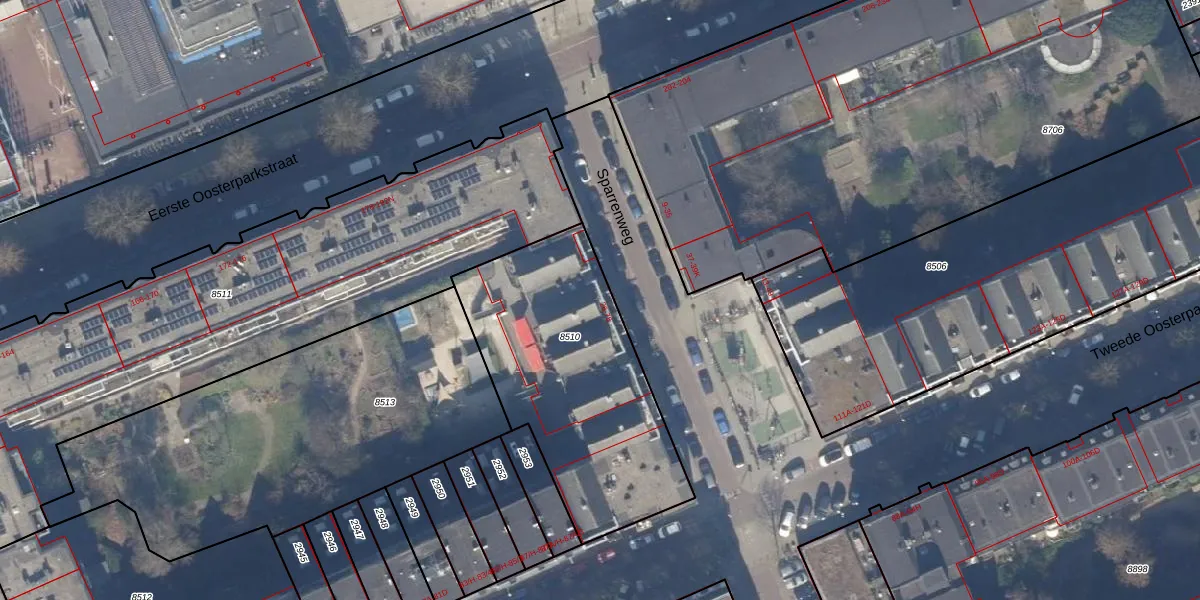 Sparrenweg 34 is gelegen op kadastraal perceel ASD15S8510. Deze kadastrale aanduiding is uniek en wordt gebruikt door het Kadaster om eigendomsrechten en andere zakelijke rechten vast te leggen. Het perceel maakt onderdeel uit van de kadastrale gemeente Amsterdam.